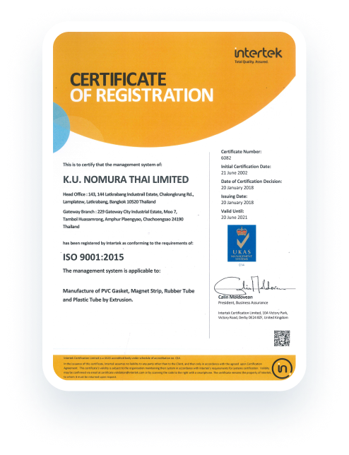 Certificate official byIntertek Certification Limited